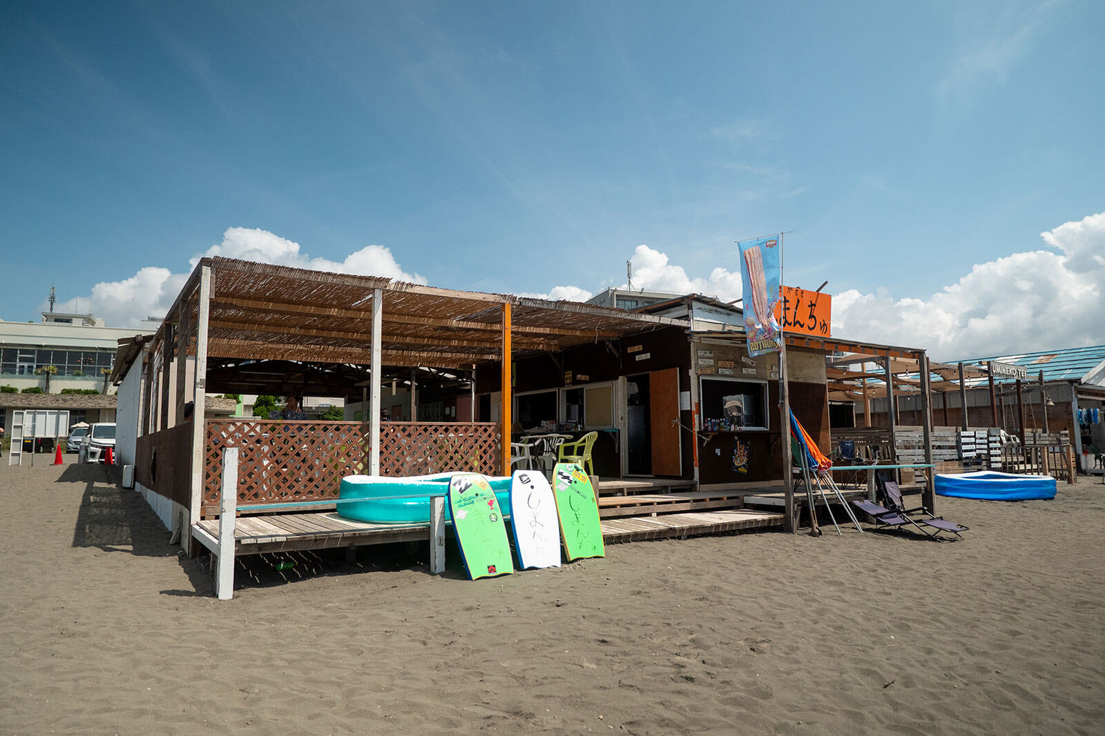 ※R134号線交差点「サザンビーチ」から海側に降りたところが駐車場入口となります。